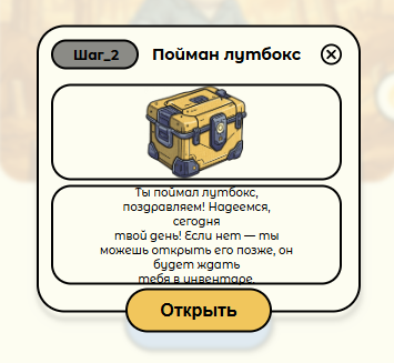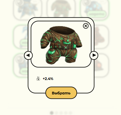 Пока герой “добывает” токены ему могут выпадать лутбоксы, с которых можно получить все те же айтемы, что и в рулетке. Предметы можно надеваются через рюкзак: они, как правило, увеличивают скорость фарма на процент, который написан в карточке.