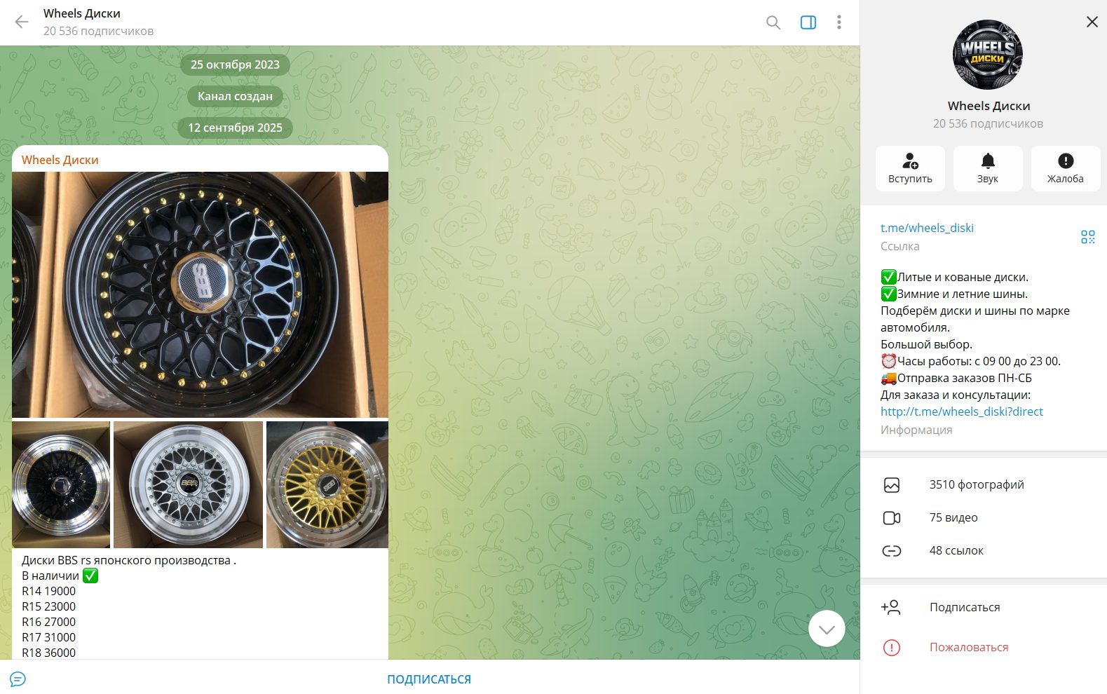 Мы не можем рекомендовать телеграмм-магазин «Диски Wheels» из-за неопределенной репутации и скрытых, принципиально важных условий покупки товаров.