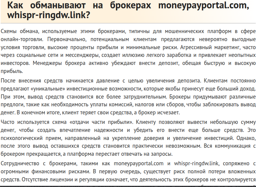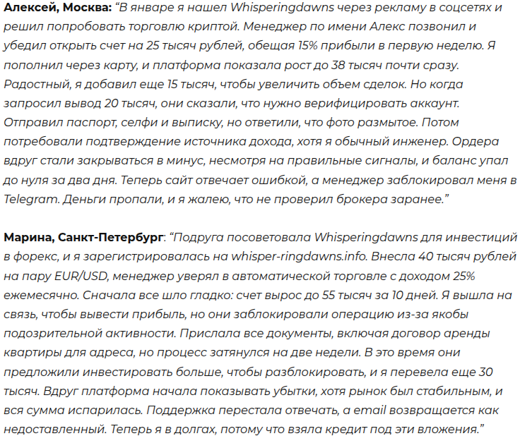 Whisperingdawns Net отзывы: разоблачение инвестиционного брокера Whispr Ringdw Link