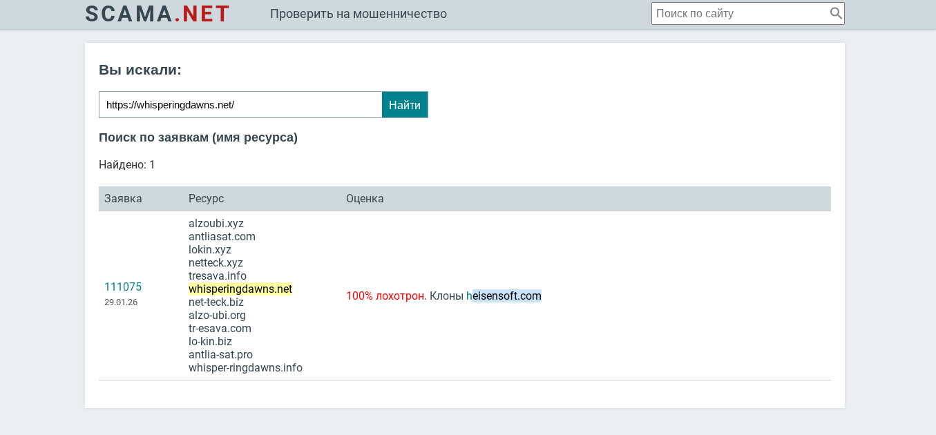 Следующий на очереди факт — наличие копий проекта WhisperingDawns net. Если подобное есть, то можно смело говорить, что команда представила платформу, которая является частью финансовой сетки. К слову, в случае с данным брокером как раз такая ситуация. Через аналитический инструмент Scama net мы узнали, что у биржи 10 итераций, включая alzoubi xyz, antliasat com, lokinxyz, netteck xyz, tresava info.