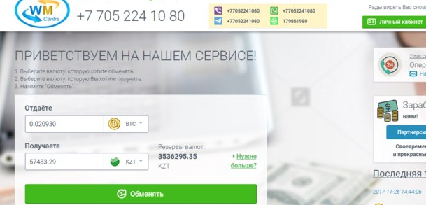 Вариантов вывода достаточно много, что указывали клиенты в отзывах о WMcentre. Сам обмен происходил автоматически, причем сервисом пользовались не только жители Казахстана, но и россияне. Обменивая крипту, стоило учитывать время работа банка, поскольку несмотря на автоматизацию процессов некоторые транзакции проверялись вручную.
