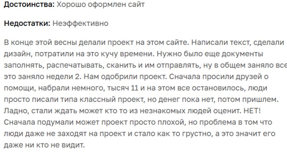 - непрозрачность модерации и перенаправления средств без согласия донаторов.