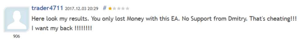 Торговый советник Working Bot, по словам пользователей, не приносит результатов. Большинство отзывов составлено на английском языке, но практически все выражают недовольство этой программой. С роботом можно только потерять деньги, а Дмитрий не оказывает квалифицированную поддержку. Он занимается мошенничеством.