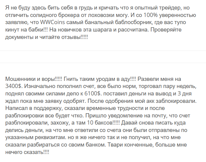 • есть негативные отзывы о Wwcoin.