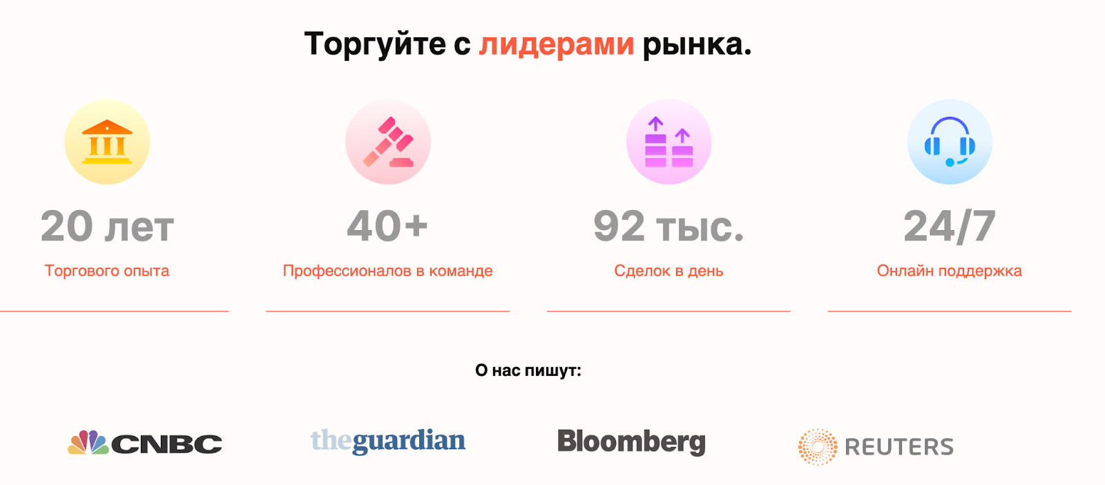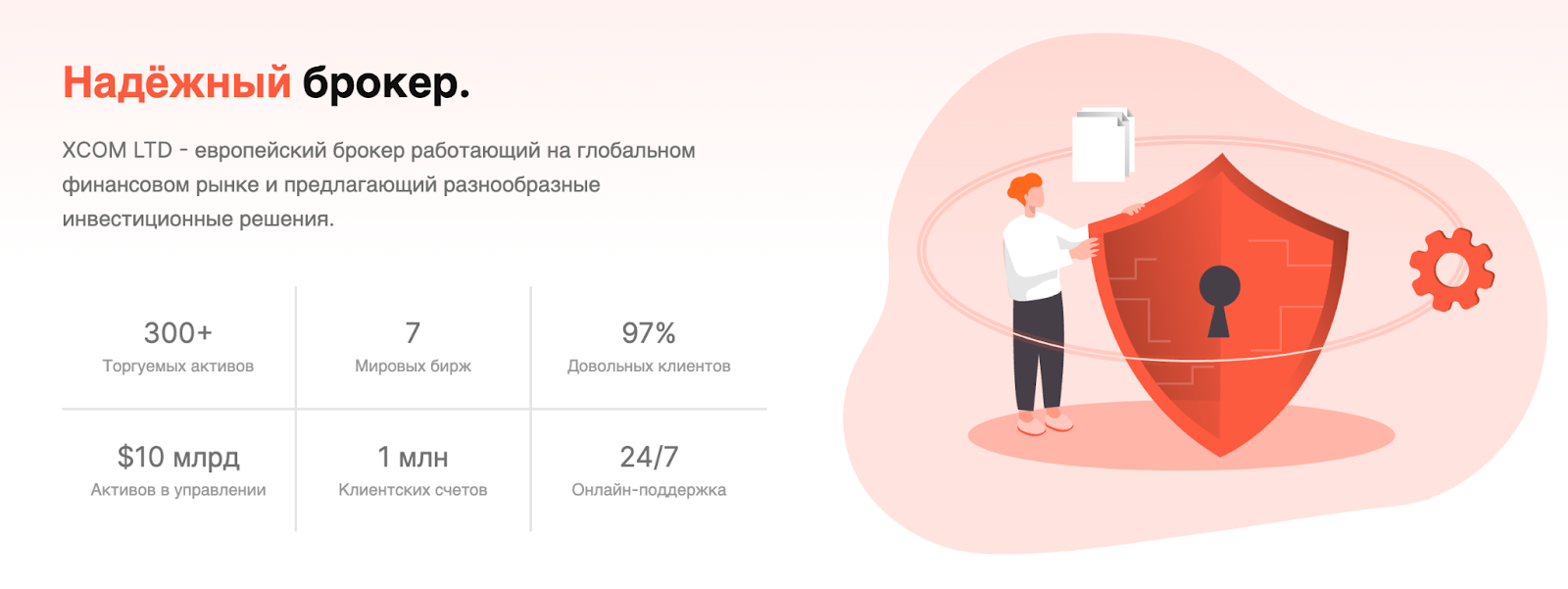 На главной странице XCOM LTD красуются красивые цифры: миллиарды долларов резерва, десятки опытных специалистов, 97% довольных клиентов, поддержка круглые сутки. Также в описании платформы говорится о смарт-портфелях, инвестконсалтинге, автоматических стратегия трейдинга и персональных торговых советниках.
