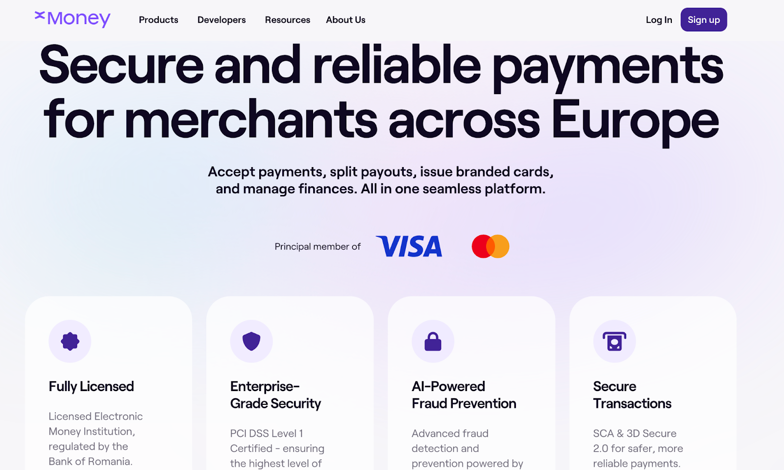 Икс Моней заявляет о полном стеке продуктов: прием карт, прием криптовалют, выпуски брендированных карт и инструменты для управления выручкой и выплатами. На сайте Х Маней это описано как «accept payments, split payouts, issue branded cards, and manage finances», при этом подчеркивается соответствие требованиям PCI DSS и европейским регуляциям — у проекта есть пометка о лицензии электронных денег (Bank of Romania) и обещание MiCA совместимости. Эти корпоративные заявы лежат в основе архитектуры сервиса и напрямую влияют на то, какие клиенты и схемы интеграции для них реально доступны.