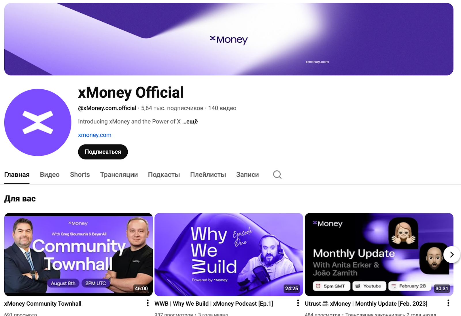 У Х Мони есть активные каналы в соцсетях: официальный X (Twitter) аккаунт, Ютуб-канал Х Мани, Instagram и поддержка в хелп центре. Контент смешанный и представляет собой в основном кейсы, продуктовые анонсы, партнерства и мероприятия. На YouTube публикуют короткие ролики про продуктовые фичи и мероприятия, в соцсетях — анонсы сотрудничеств и новости о партнерах. Подобная активность помогает продавать продукт и привлекать партнеров.