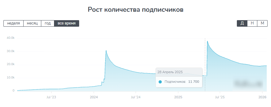 - На канале есть следы накрутки, что говорит о введении подписчиков в заблуждение и использовании ботов.
