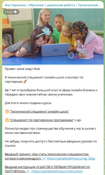 У Яны есть страницы в социальных сетях: Ютуб, Телеграмм, ВКонтакте, Инстаграмм, Фейсбук. На всех каналах Терехина выкладывает практически одинаковую информацию. Она рекламирует удаленные профессии и описывает их преимущества. Среди материалов часто можно увидеть пригласительные ссылки на бесплатные мероприятия. Как правило, такие вебинары проводят для того, чтобы привлечь внимание аудитории к своему продукту и уговорить сделать покупку.