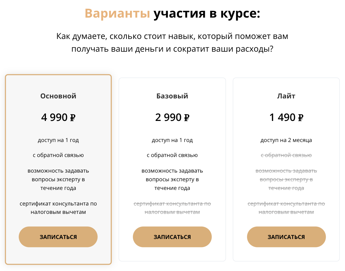 Стоимость тарифа «Лайт» составляет 1,5 тысячи рублей. Он включает в себя двухмесячный доступ к заранее записанным материалам.