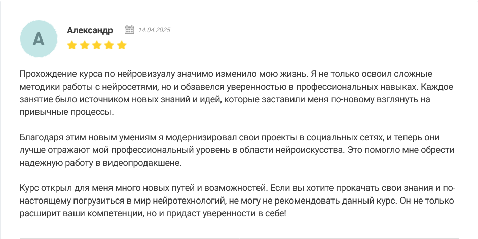 Будем рады комментарию, если желаете выразить мнение о Academy Of Neurovisual Arts или поделиться результатами обучения.