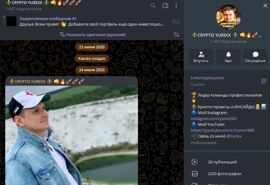 Юрий Мартынюк – трейдер, ведущий несколько каналов, включая проект в Телеграмм Crypto Yurixx. Основная деятельность связана с публикацией якобы аналитических обзоров, агрессивной рекламой платформ, многие из которых признаны пирамидами. Проект работает с 2020 года, но он не востребован среди пользователей. Вероятнее всего, Мартынюк зарабатывает на реферальных программах и размещении видео обзоров на своих каналах.