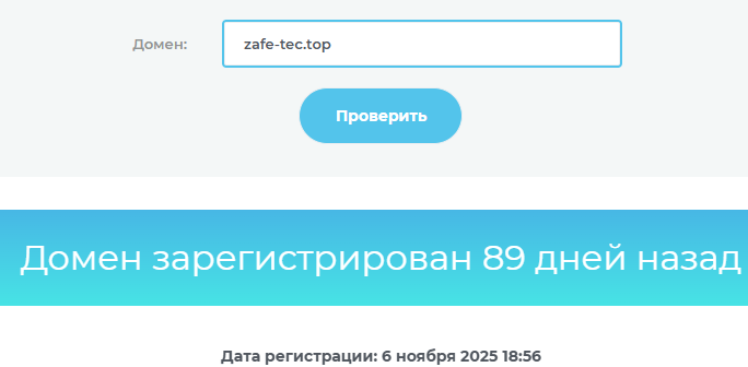 Домен сайта создан в ноябре 2025 года. Скамеры явно преувеличивают свои достижения: за пару месяцев они физически не смогли бы так сильно «раскрутить» свою площадку.