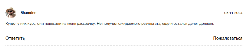 - в Сети нет положительных отзывов о закрытом курсе «Профессиональный трейдер» – пользователи говорят об обмане и никому не советуют связываться с трейдером.