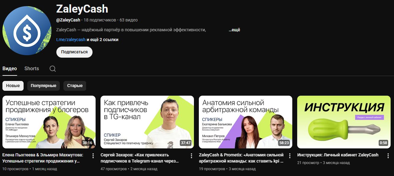 На ютуб-канале Info ZaleyCash Com за 60+ видео удалось набрать всего 18 подписчиков. На роликах, последний из которых опубликован месяц назад, не накапливается и сотни просмотров.