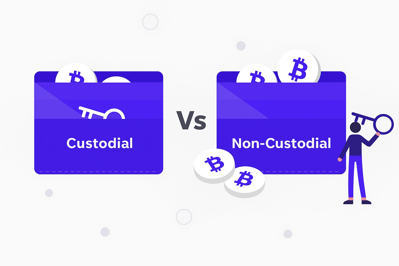 В первом случае ключи держит провайдер сервиса, во втором — пользователь хранит сид‑фразу сам и подписывает операции локально.
