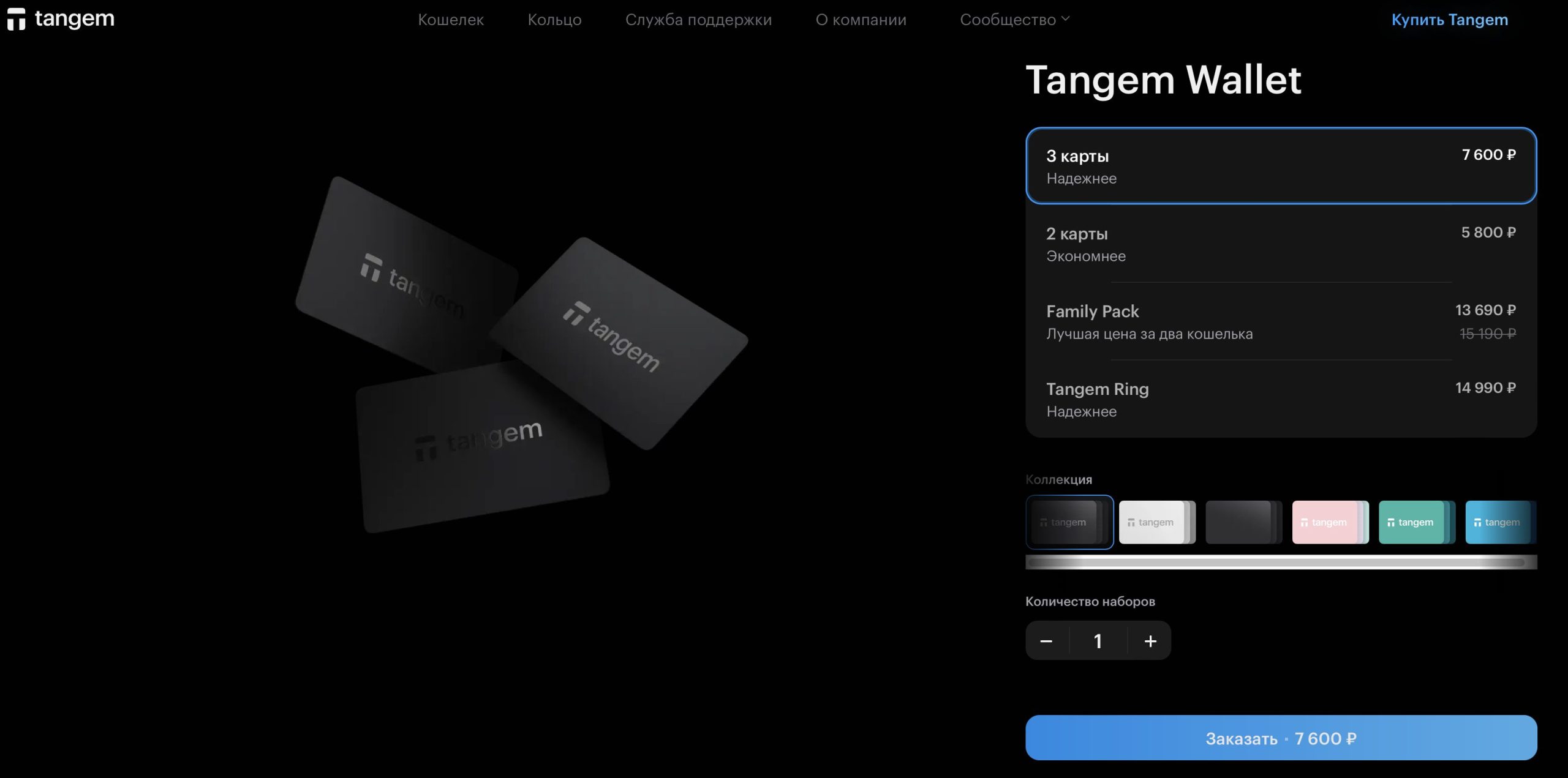 • Аппаратные NFC‑карты без проводов, 6000+ активов — Tangem