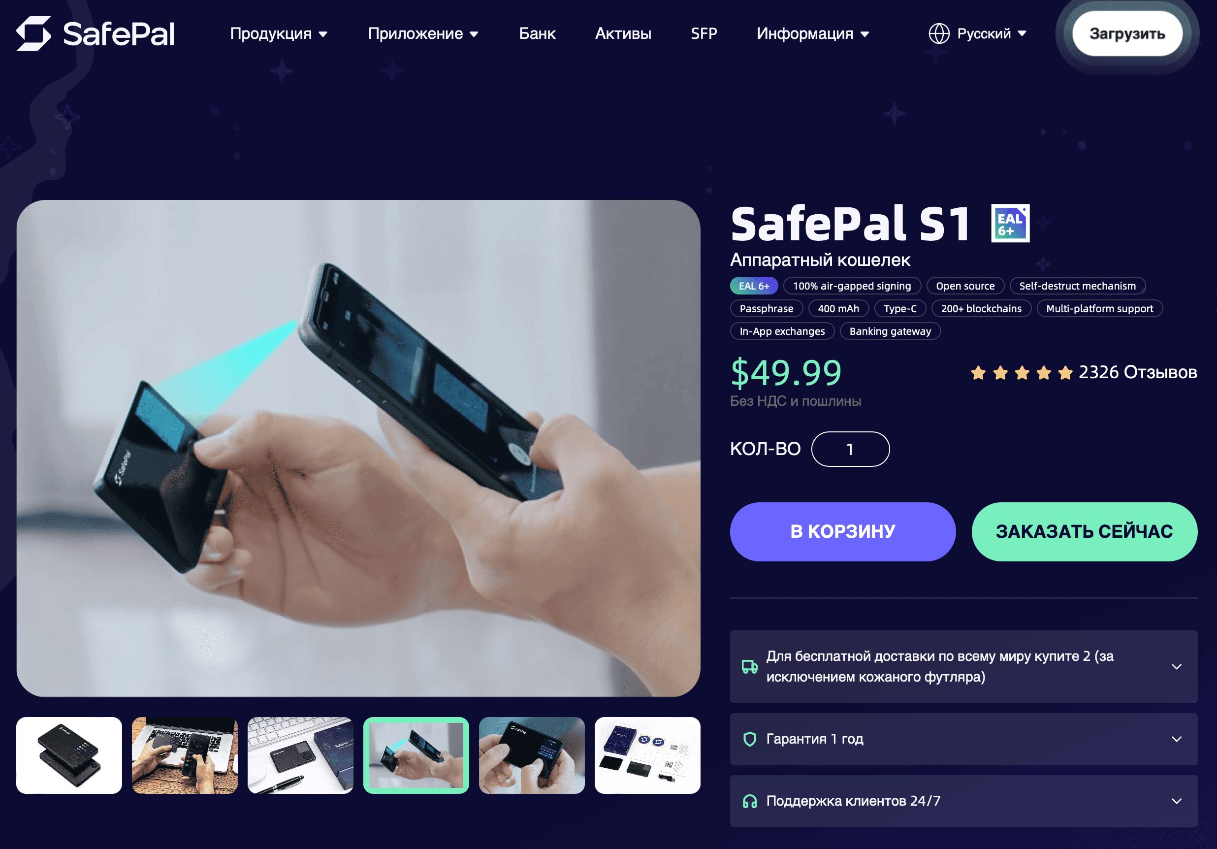 • Оффлайн‑устройство с QR‑подтверждением транзакций — SafePal