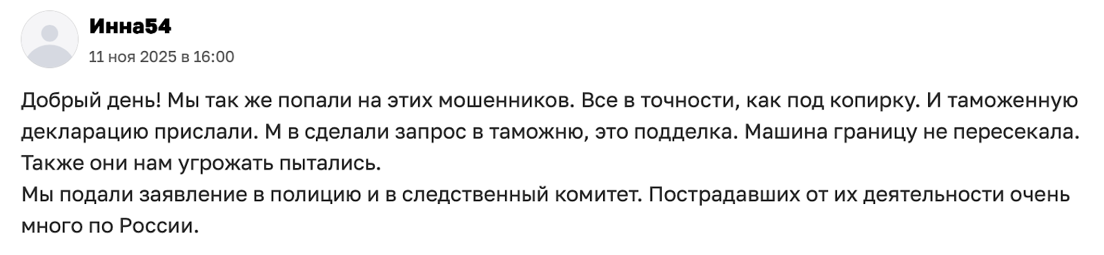 Другие жалуются на поддельные таможенные декларации и угрозы от «менеджеров» при попытке вернуть деньги. Многие отмечают, что телефоны мошенников пробиваются в Подмосковье, а документы выглядят откровенно липовыми.