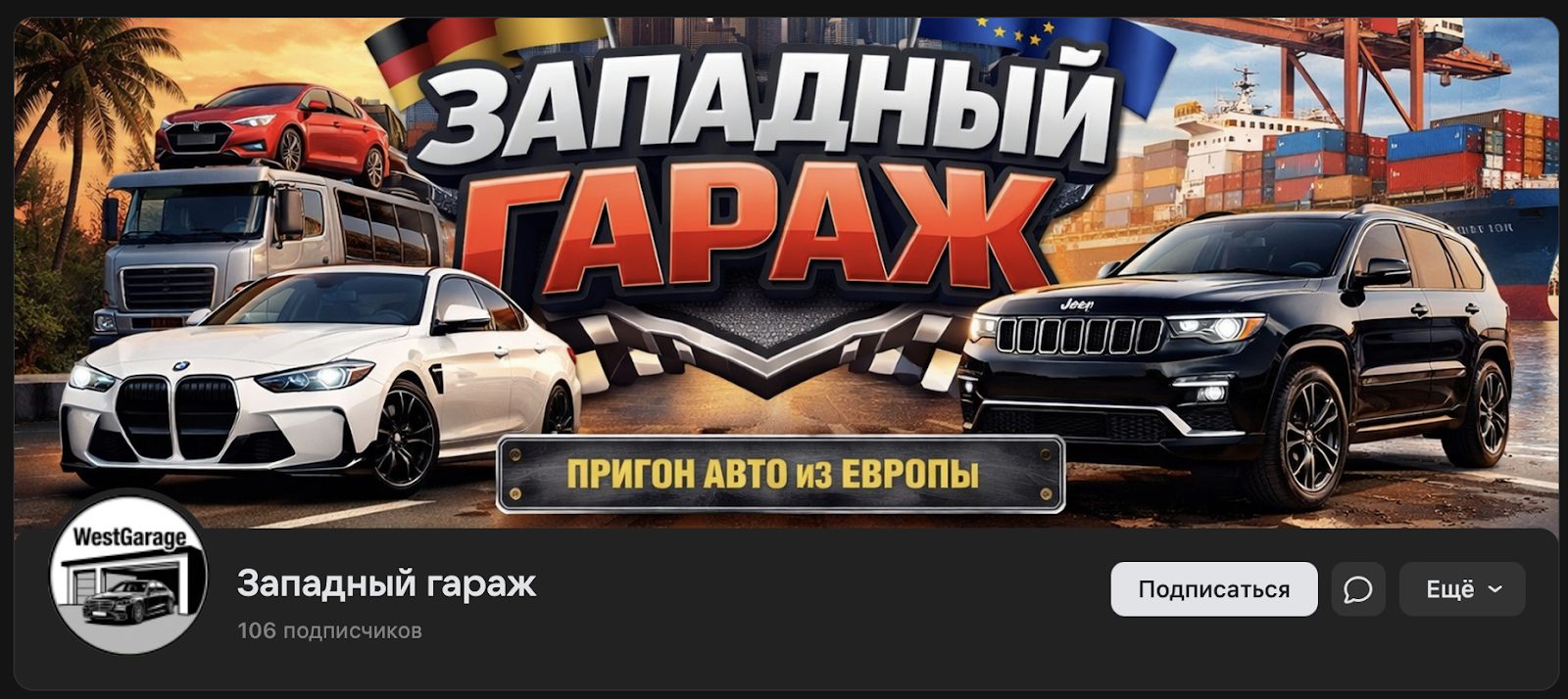 «Западный гараж» — телеграмм канал, работающий по классической схеме «пригон из Европы через Беларусь». p Канал регулярно публикует фото машин, отчеты о погрузке и истории «счастливых клиентов». Админы предлагают сказочные условия с невероятными ценами и сжатыми сроками.