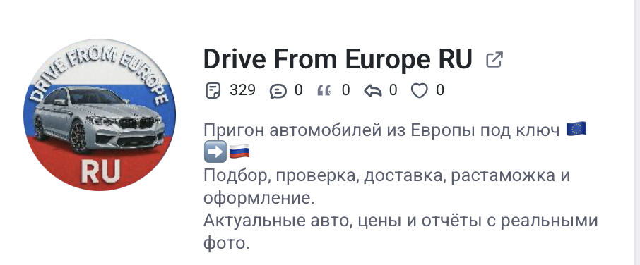 На некоторых сервисах метрики канал все еще числится под предыдущим названием Drive From Europe. Кроме «имени» и фото на аватарке суть не меняется.