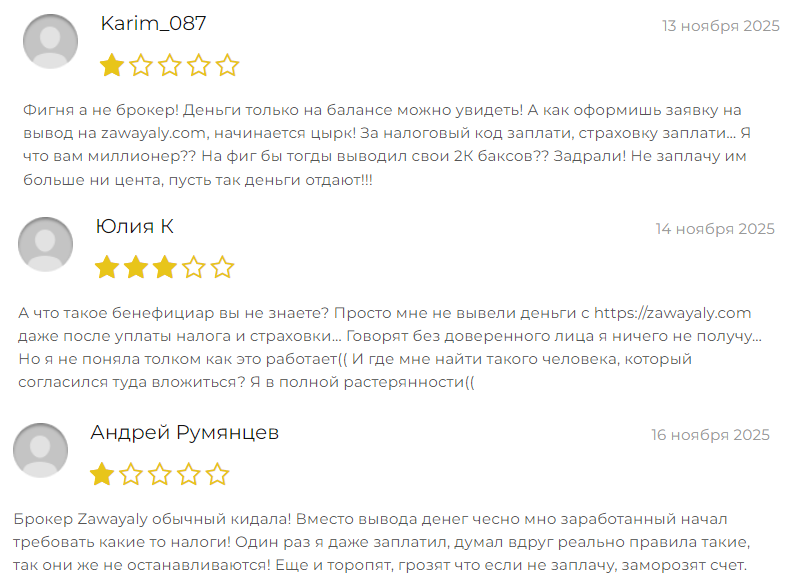 - в сети граждане оставляют о трейдинг организации Zawayaly Com негативные отзывы;