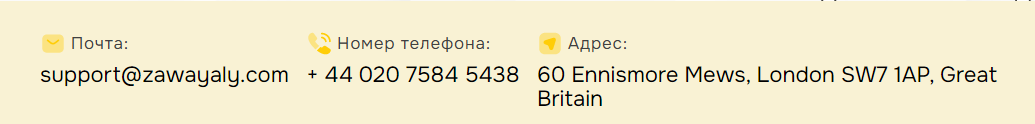 Мы решили проверить достоверность предоставляемых людям данных на сайте и обнаружили, что брокер заслуживает метки «Скам». На интернет-странице «порядочной» организации находится адрес недействительной электронной почты Support zawayaly com.