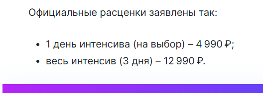 Курс можно приобрести в складчину. И, по состоянию на 26 марта 2026 год, 24 человека уже подали заявки. Стоимость обучения на сайте не уточняется. Но, судя по данным из открытых источников, 1 день интенсива обойдется в 4990 рублей, а доступ к полной программе, рассчитанной на 3 дня, — 12990 рублей.
