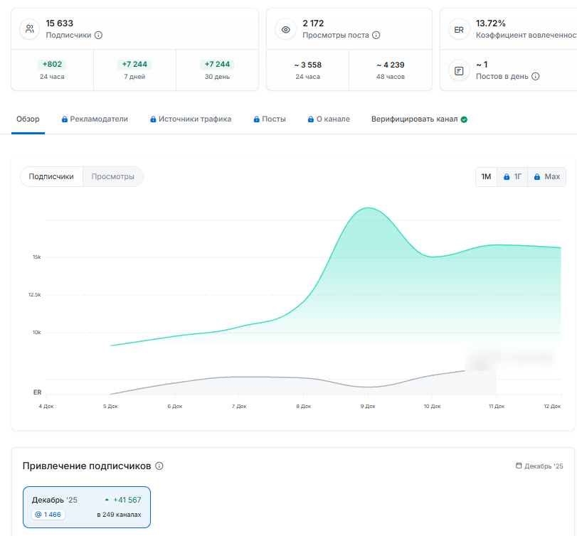 Публикации просматривает около 10% аудитории, однако и счетчики могут быть подкручены, чтобы продемонстрировать интерес аудитории к работе автора. В любом случае странно, что всего 10% просматривает посты, ведь на канал так активно и охотно подписываются.
