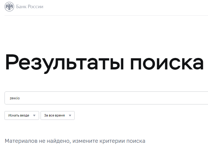 И доверять такому сервису, безусловно, нельзя. Владельцы проекта заявляют о действующем регулировании деятельности брокерской компании. Но в действительности эти утверждения весомыми аргументами не подкреплены, поэтому их также стоит считать ложными. На платформе Центробанка РФ название организации Zewlio отсутствует в списках легально действующих компаний.