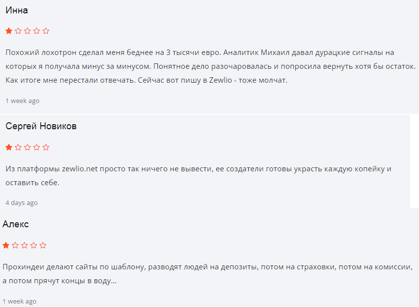 - граждане оставляют о скам-конторе «Зевлио Нет» отрицательный фидбек;