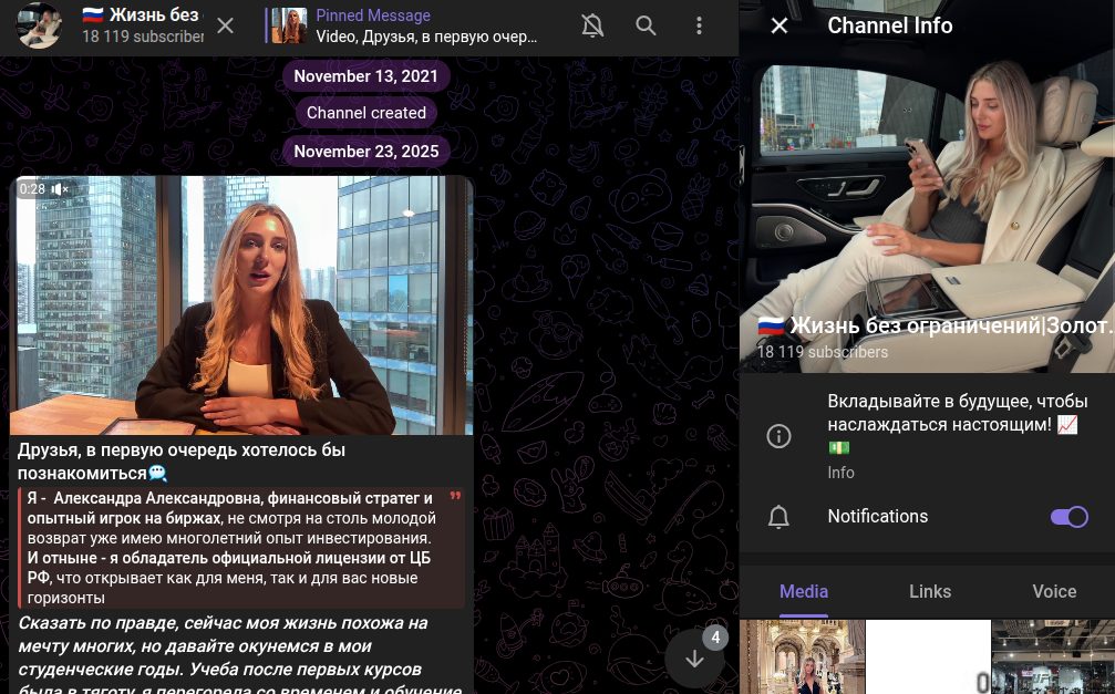 Zhizn bez ogranicheniy — бесполезный телеграм-канал, который лишь обманывает пользователей. Псевдо эксперт Александра обещает доходность от 100%, но при этом: