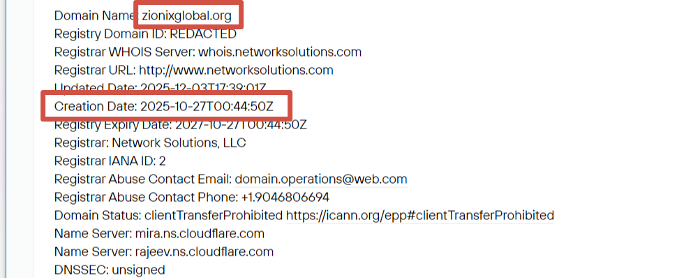 Стать клиентом сервиса можно на официальном сайте. Именно там расположены основные сведения о брокере и форма для регистрации. Биржа утверждает, что работает давно и имеет колоссальный опыт. Однако, эти заявления легко опровергаются проверкой. Выяснили, что домен zionixglobal org создан в конце октября 2025 года. Таким образом, владельцы обманывают пользователей.