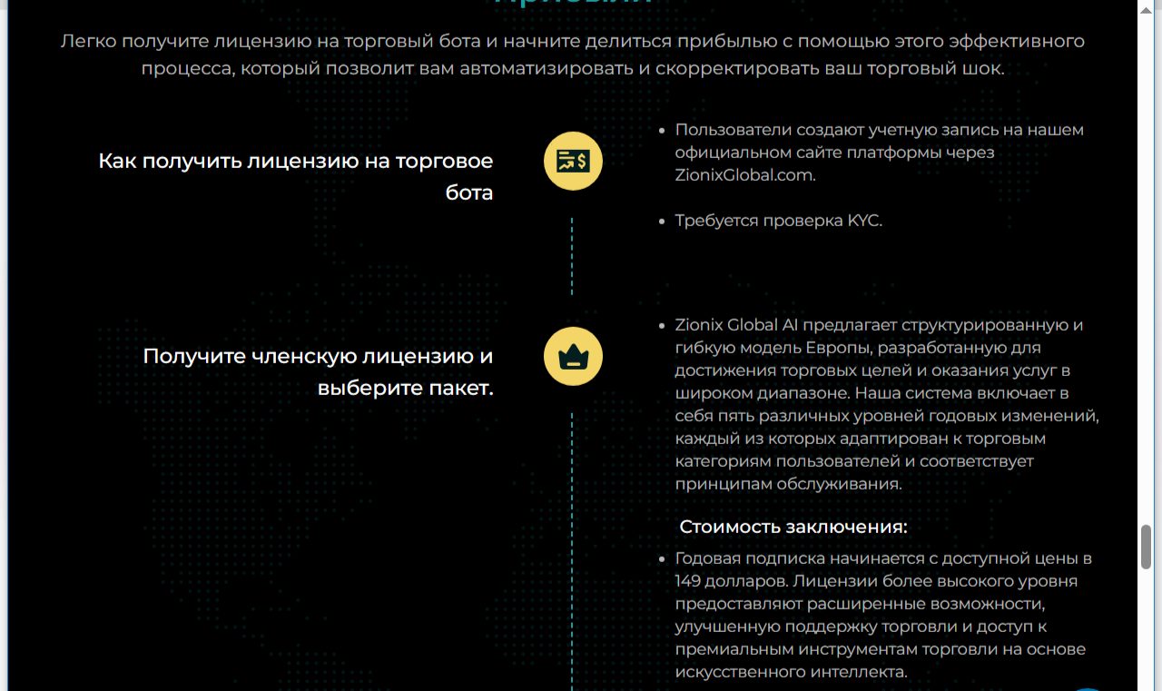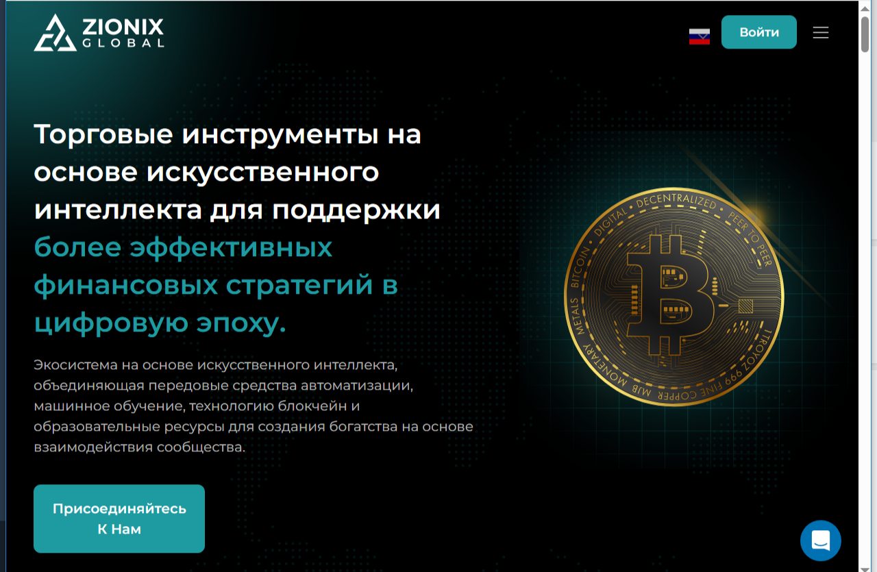 ZionixGlobal – это криптовалютный брокер нового поколения. Предлагает торговлю с использованием ИИ. Также биржа предоставляет бесплатные сигналы, обучение и сопровождение на первых порах. Компания обещает мгновенное увеличение депозита и выводы с минимальными комиссиями. В статье узнаем, можно ли верить брокеру, или это очередной лохотрон.