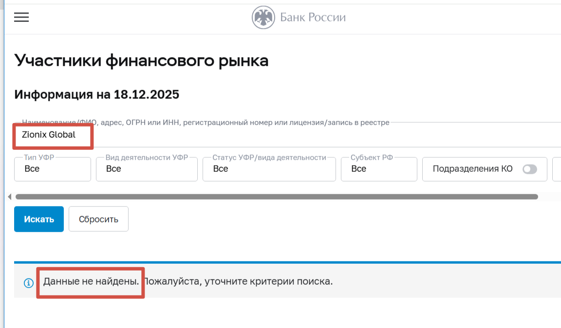 Совокупность таких фактов однозначно свидетельствует, что Zionix Global это типичный мошеннический проект. Мы не рекомендуем сотрудничать с ним. Если вы пострадали от действий лжеброкера, поделитесь своим опытом в комментариях.