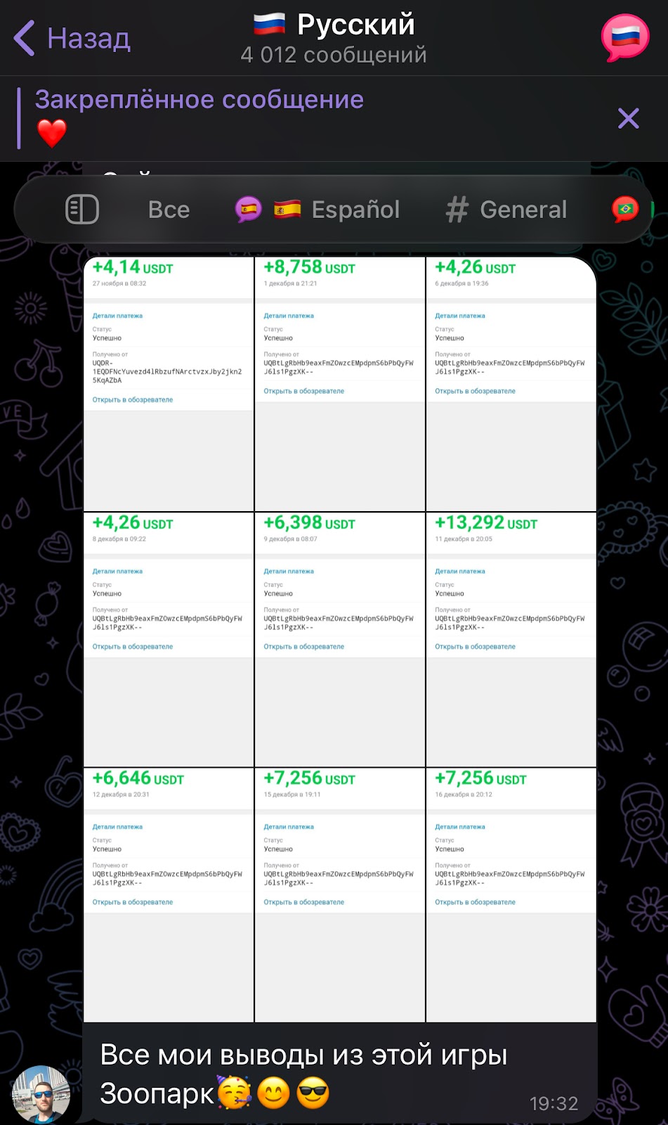 В группе Zoo Crypto Group можно заметить некоторые комментарии пользователей со скринами выведенных средств. Один из клиентов неоднократно делился своими доходами. Однако неясно, насколько отзыв честный и можно ли ему доверять.