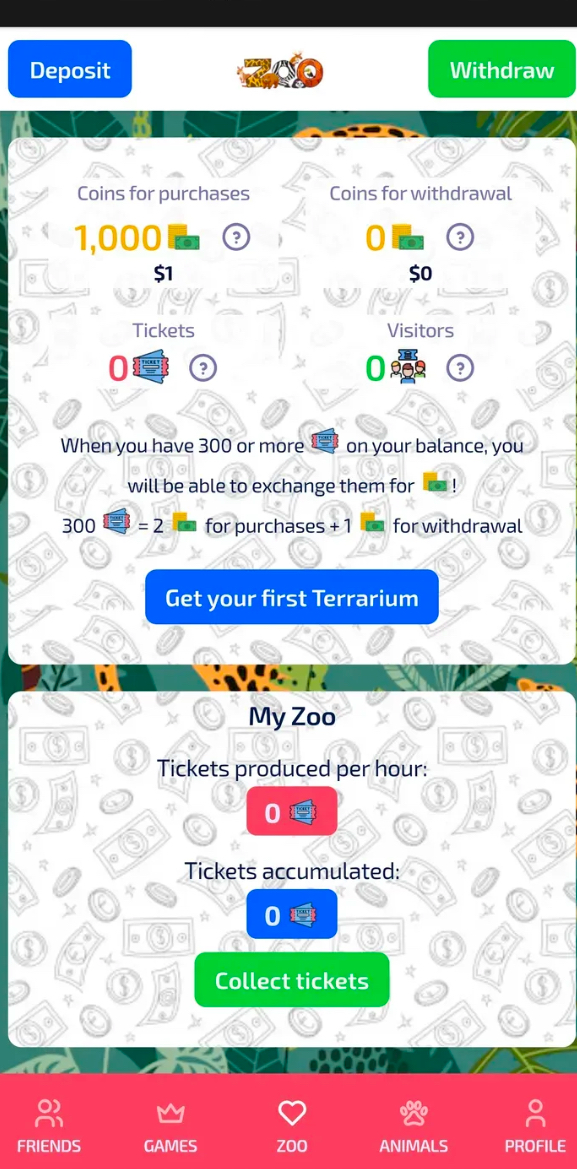 Авторы гарантируют якобы «реальные деньги» за активность в игре. Билеты и моменты начисляются за игровые действия и улучшение зоопарка. Также пользователи могут приглашать друзей и получать бонусы через рефералку. Однако точные условия партнерской программы и вывода средств остаются в секрете. Владельцы не раскрывают основных условий работы, что делает игру непрозрачной.