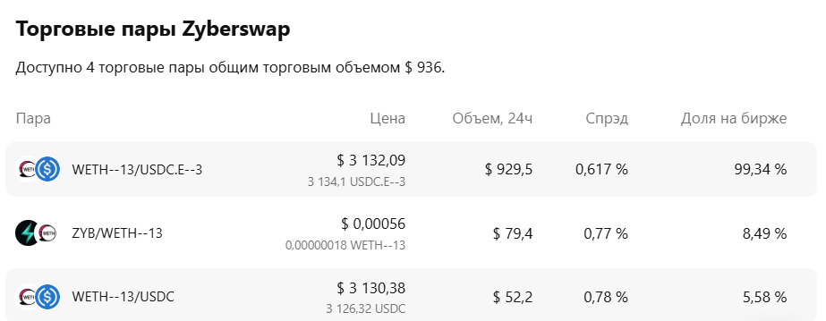 Zyb – биржа, отзывы о которой в интернете отсутствуют. Это децентрализованная платформа для обмена криптовалют, работающая через интерфейс Zyberswap на базе Arbitrum. Разработчики заявляют о гибридной архитектуре протокола и поддержке нескольких версий пулов. Команда пишет о полной автономности проведения транзакций. Интерфейс app zyberswap io ориентирован на опытных пользователей DeFi. Однако отсутствие прозрачной информации о команде и условиях использования повышает риски.