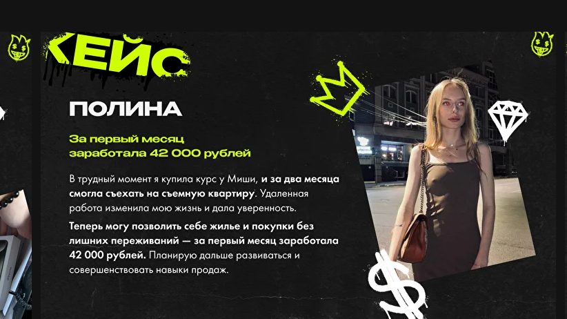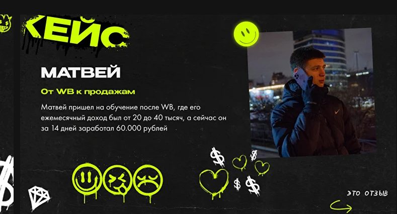 Обещания Зюльганова звучат стандартно для рекламы курсов по типу «выйди на 100 000 за месяц без опыта». Якобы доходы учеников размером от 80 000 до 270 000 рублей подаются без конкретных верифицированных кейсов. Мол, «ученики уже снимают квартиры в центре Петербурга и ездят на море». Но проверить это невозможно.